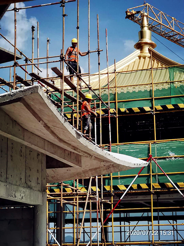 宁波雪窦山弥勒文化园于6月确定争创“鲁班奖”的质量目标,受中国核工业华兴建设有限公司委托,我公司6月30日成立了宁波浙江佛学院二期创优项目组,组织30余名员工入驻雪窦山弥勒文化园项目,承担现场文明施工整改和质量缺陷修补工作。进驻一个月以来,在项目部管理人员和一线工作人员的努力下,短短一个月内,对施工现场进行了整理,对质量缺陷进行了修补,拆除并重安装了现场安全防护装置,整理了施工现场环境,受到中核华誉项目部的特别嘉奖,积极推进了该项目的生产进程。