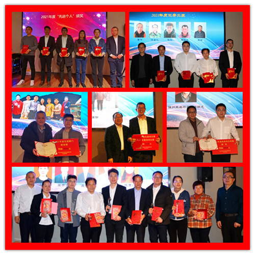 晚上,公司举行了庆典晚宴,晚宴期间,公司对公司改制十周年“十大功勋人员”及2021年度“先进集体”、“先进个人”进行表彰和奖励,对于树立典型,激扬奋进,晚宴现场热闹非凡。