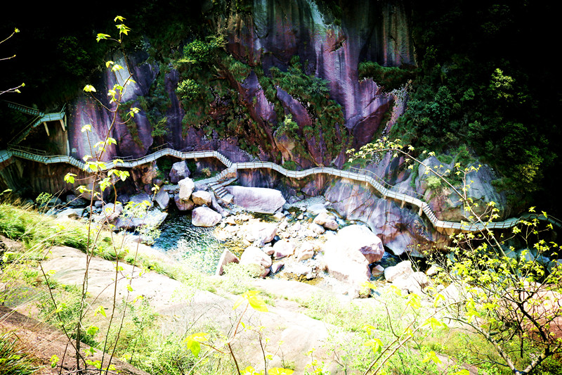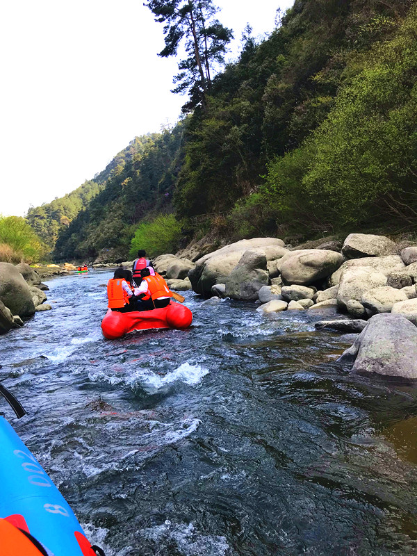 浙西大峡谷是两山之间有一条溪流,穿越峡谷之间,因奇峰秀石生长在峡谷两旁悬崖之上,而增加其雄伟俊秀,景区内栈道蜿蜒,奇峰、怪石、峭壁、飞瀑,大好春日,花开叶绿,整个峡谷勃勃生机的春意,让人陶醉,虽不是最好的峡谷旅游季,性本爱丘山,久在城市里,复得返自然的一群女子,徜徉在蓝天白云下,青山绿水间,回归本性,陶醉在这山水之间,白马崖、老碓溪、剑门关,虽没走完全程,但大家一起皮筏漂流,快艇游峡,峡谷索道飞行,让我们领略了动感的大峡谷。
