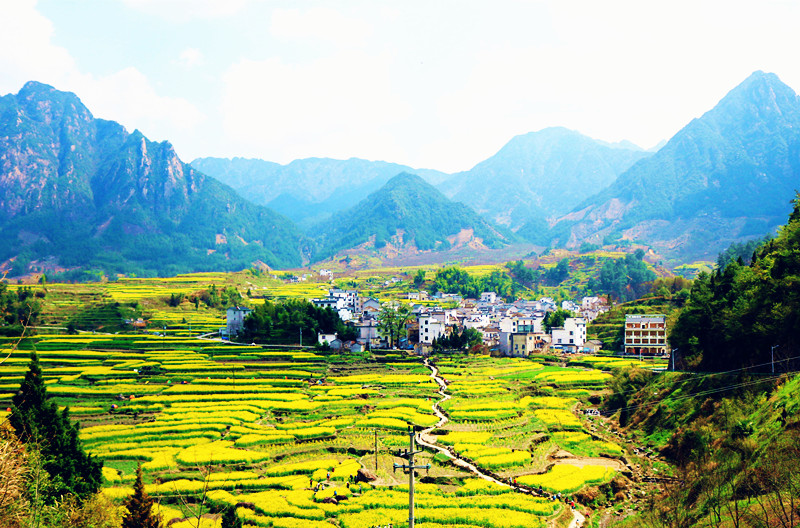 车窗外,远山,村庄,油菜花;放眼望,蓝天,白云,山色美。看不尽的窗外美景,两小时后到达徽杭古道—江南第一关。