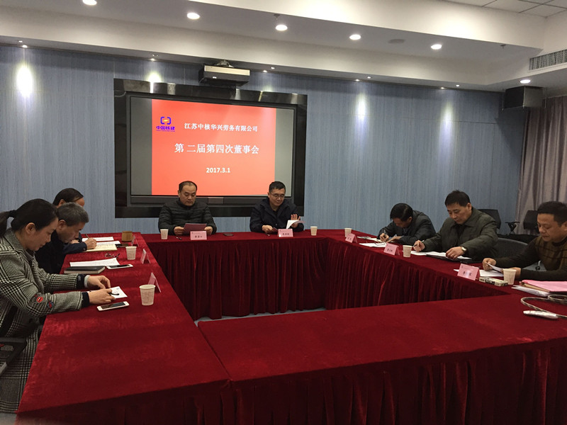 江苏中核华兴劳务有限公司第二届第四次董事会和第六次股东会于2017年3月1日在南京总部和建大厦召开。公司五位董事、十一位股东全部出席了会议,董秘李贤军、监事董玉林、杨红列席了董事会。